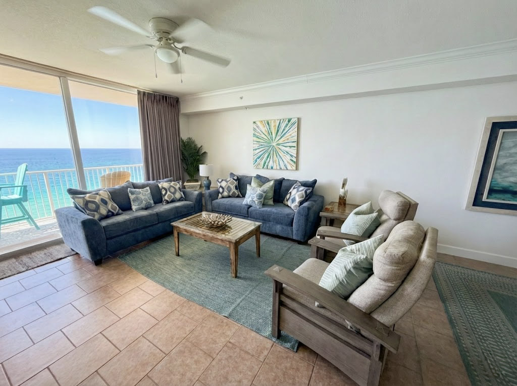 Enjoy breathtaking views of the largest private beach in Panama City, FL from your well furnished condo and balcony at 1702! This three bedroom, three bathroom condominium features plenty of amenities that you and your family can enjoy. Here are the details: