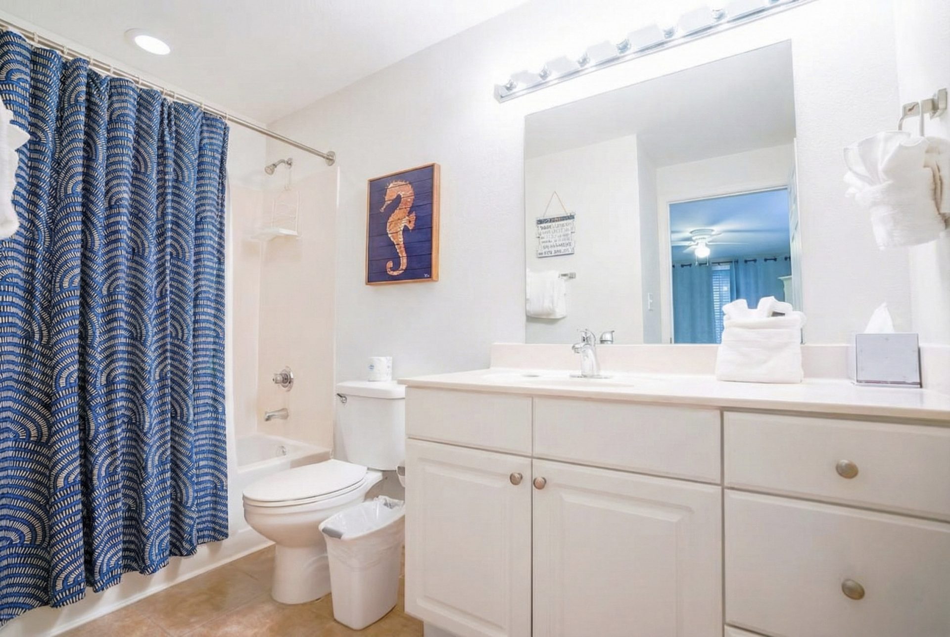 • Second Guest Bedroom features: a King Bed, 40″ television, private bath with tub/shower combo.